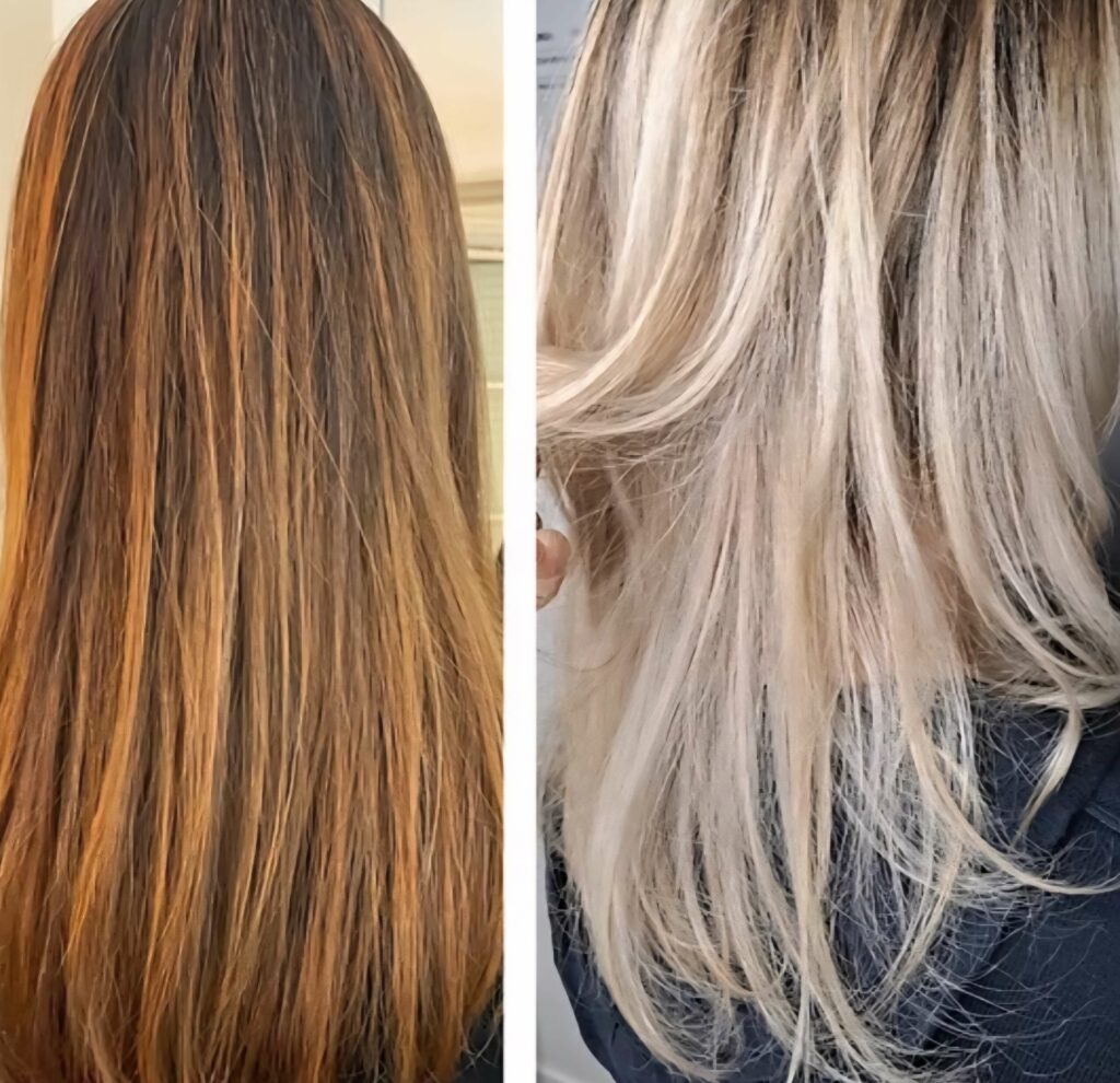 バレイヤージュ後に髪の赤み、オレンジ味、黄ばみなどを抑えながら、色味を調整するテクニックです。